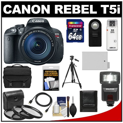Canon EOS Rebel T5i Digital SLR Camera & EF-S 18-135mm IS STM Lens with 64GB Card + Battery + Case + Flash + 3 UV/CPL/ND8 Filters + Tripod + Accessory Kit