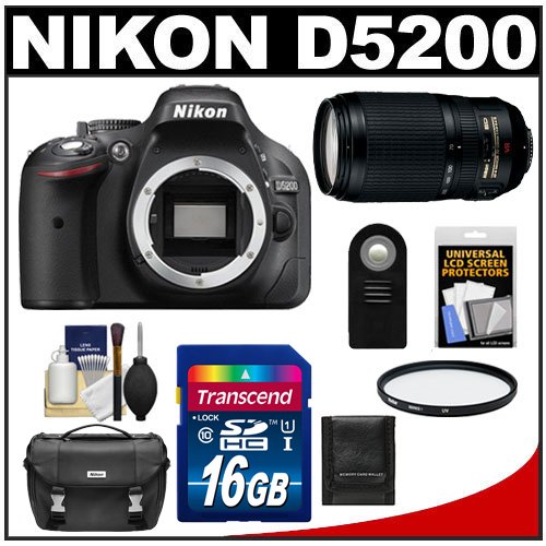Nikon D5200 Digital SLR Camera Body (Black) with 70-300mm VR Zoom Lens + 16GB Card + Case + Filter + Remote + Accessory Kit